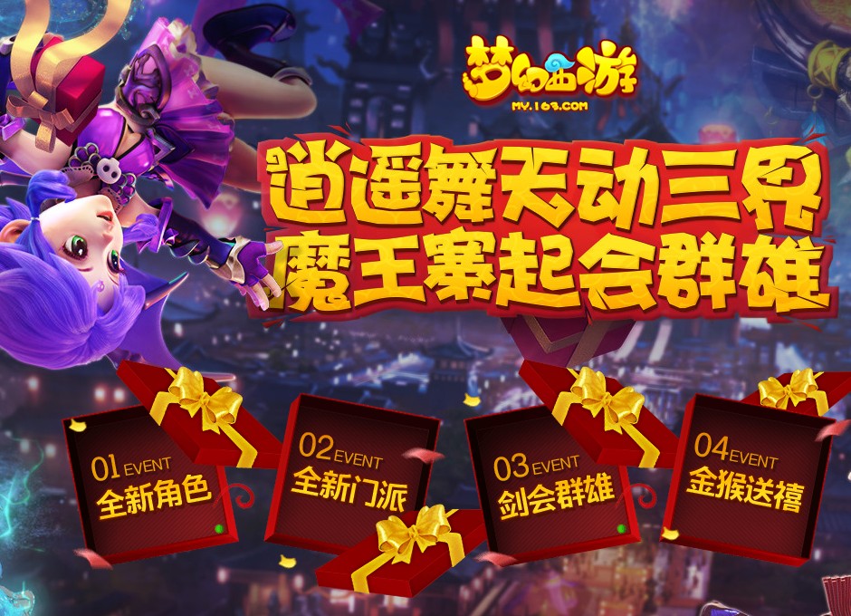创建角色界面增加“逍遥生”和“舞天姬”角色,前者可选门派为“方寸山”和“大唐官府”,后者可选门派为 “普陀山”和“龙宫”。