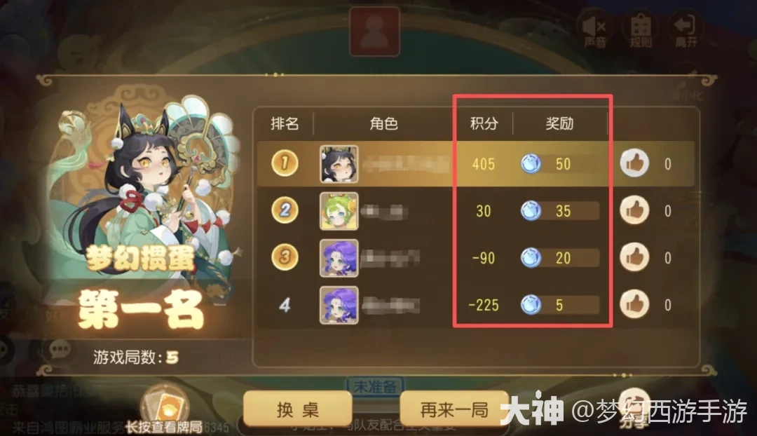 牌桌结算会计算个人在对局中累计获得的队伍积分,根据积分排名获得咕噜币,积分越高咕噜币越多。每周在掼蛋区获取的咕噜币最多不超过500。