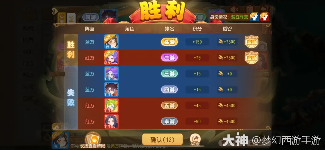 每人获得队伍积分,并根据队伍积分情况变化稻谷。