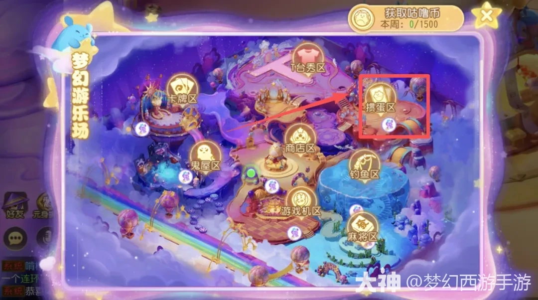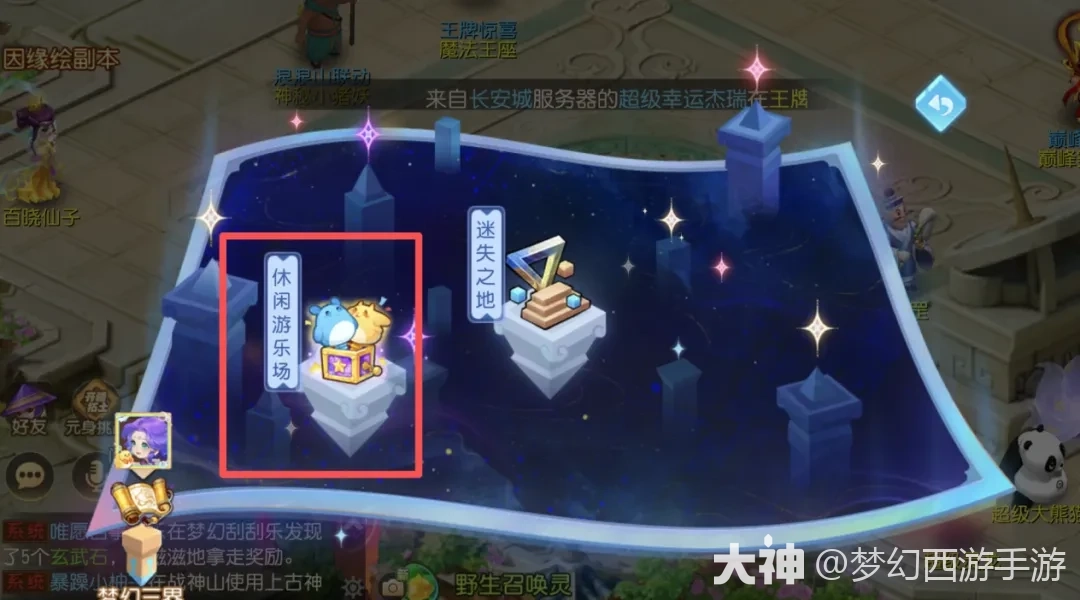 少侠们可以打开地图,点击神秘外域再点击休闲游乐场: