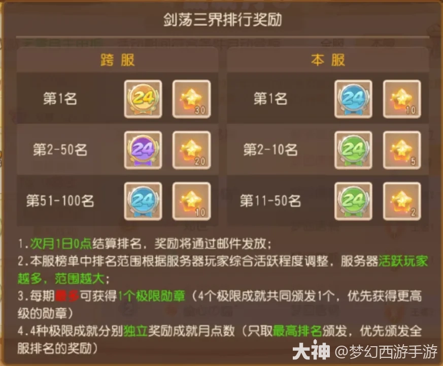 本期共有4个极限成就供各位少侠挑战,无需自主申报,活动期间符合条件便会自动登榜,最终根据每个单项在本服、全服的排名发放相应勋章和成就点数。