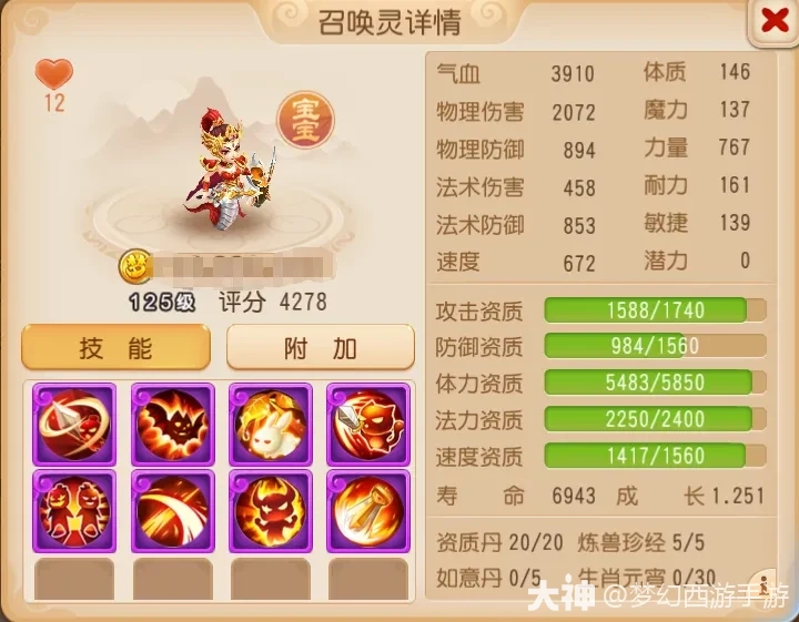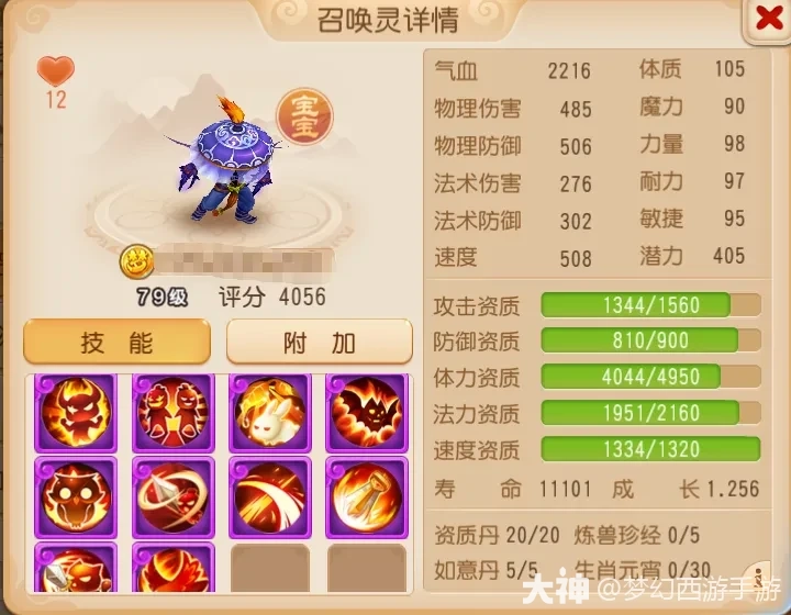 作为携带善恶有报技能的召唤灵,专属内丹在触发善报时会临时提升20%物理伤害,少侠可不要因为会善报就忽视它,下一次出手触发恶报时就是一击致命!