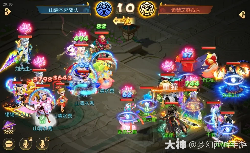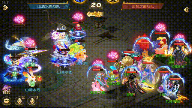直到第20回合,对战方虽依靠提前一回合复活死亡禁锢的“杨柳甘露”成功拉起方寸,但此时场面已经完全失控。观战方方寸及普陀选择强换瞬法进攻,地府喝酒补怒,龙宫龙卷雨击出手触发法术连击,此时山清水秀战队前排召唤灵仅剩一只嘲风在场。