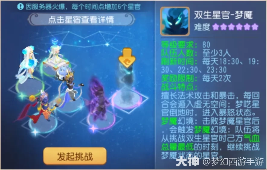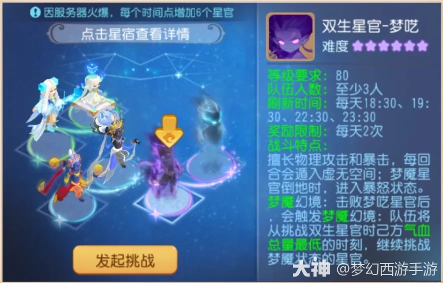 全新双生·梦魇星官上线,挑战成功奖励翻倍,还有高兽诀等你拿!